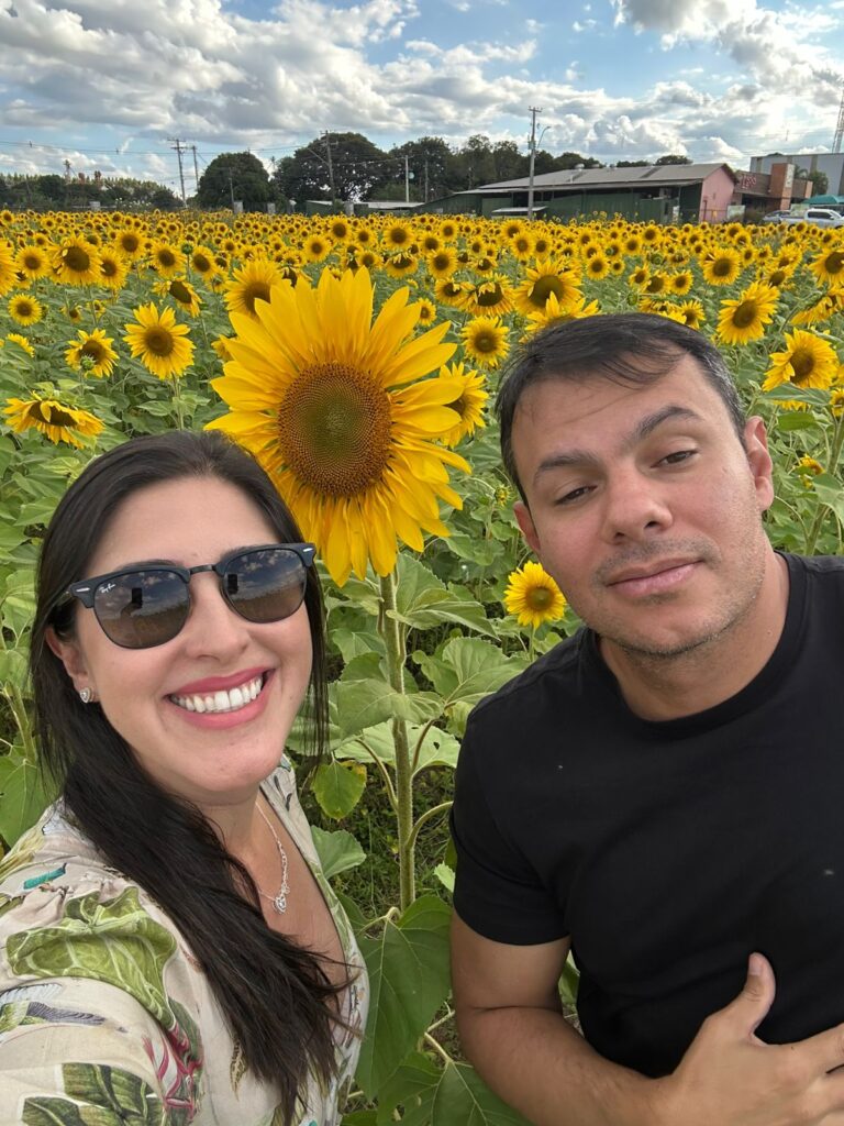Dica: coloque repelente. Meu namorado ficou incomodado com os insetos. E tenha cuidado, pois há abelhas por toda a parte em volta dos girassóis,