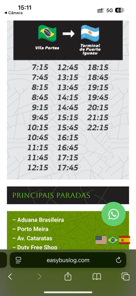 💡 Dica: Confira os horários ou chegue com antecedência e confirma com o motorista que o ônibus vai até Puerto Iguazú.
