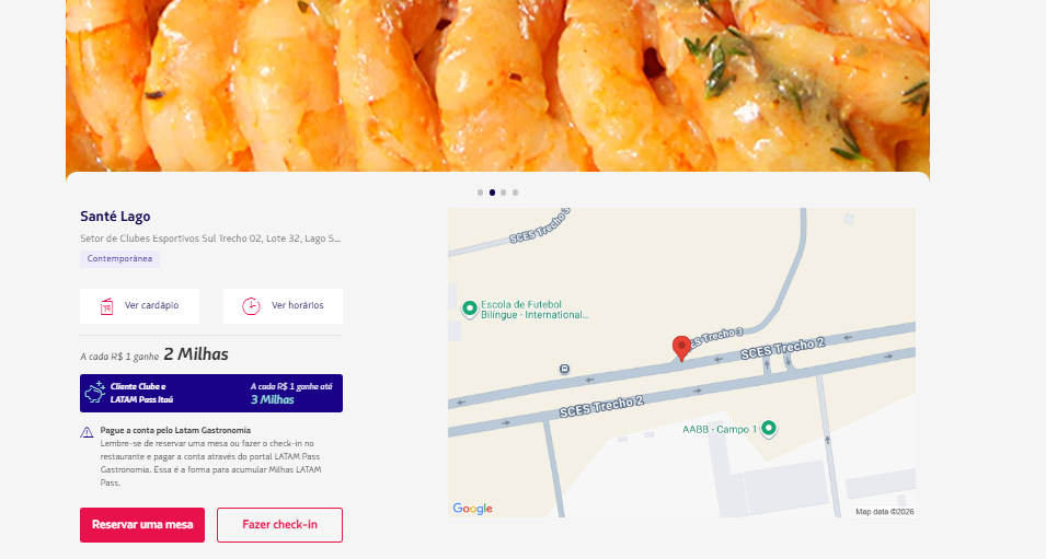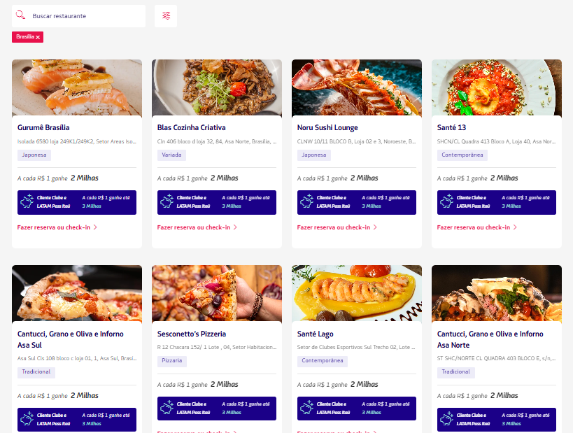 Alguns exigem reserva pela plataforma ou checkin no local. Lembre-se de fazer o Chekin via APP Latam Pass antes ou no próprio restaurante.